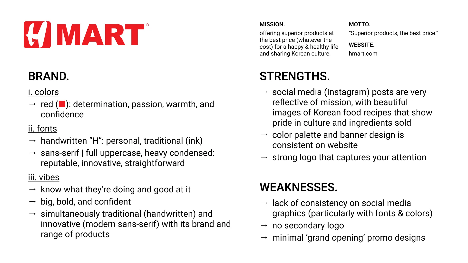 Given the lack of big Vietnamese grocery store names, I ran a competitive analysis on popular Asian supermarket chains like 99 Ranch Market, H Mart, and Tokyo Central and paid close attention to their individual missions and visual design.