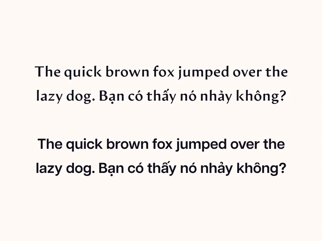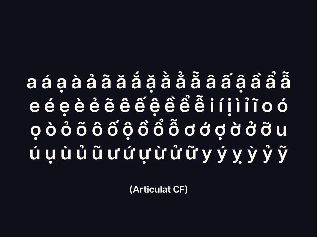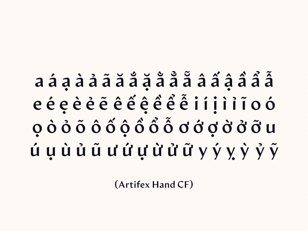 From left to right: All Vietnamese vowels typed out in the primary typeface, followed by the secondary typeface, and a type test.
