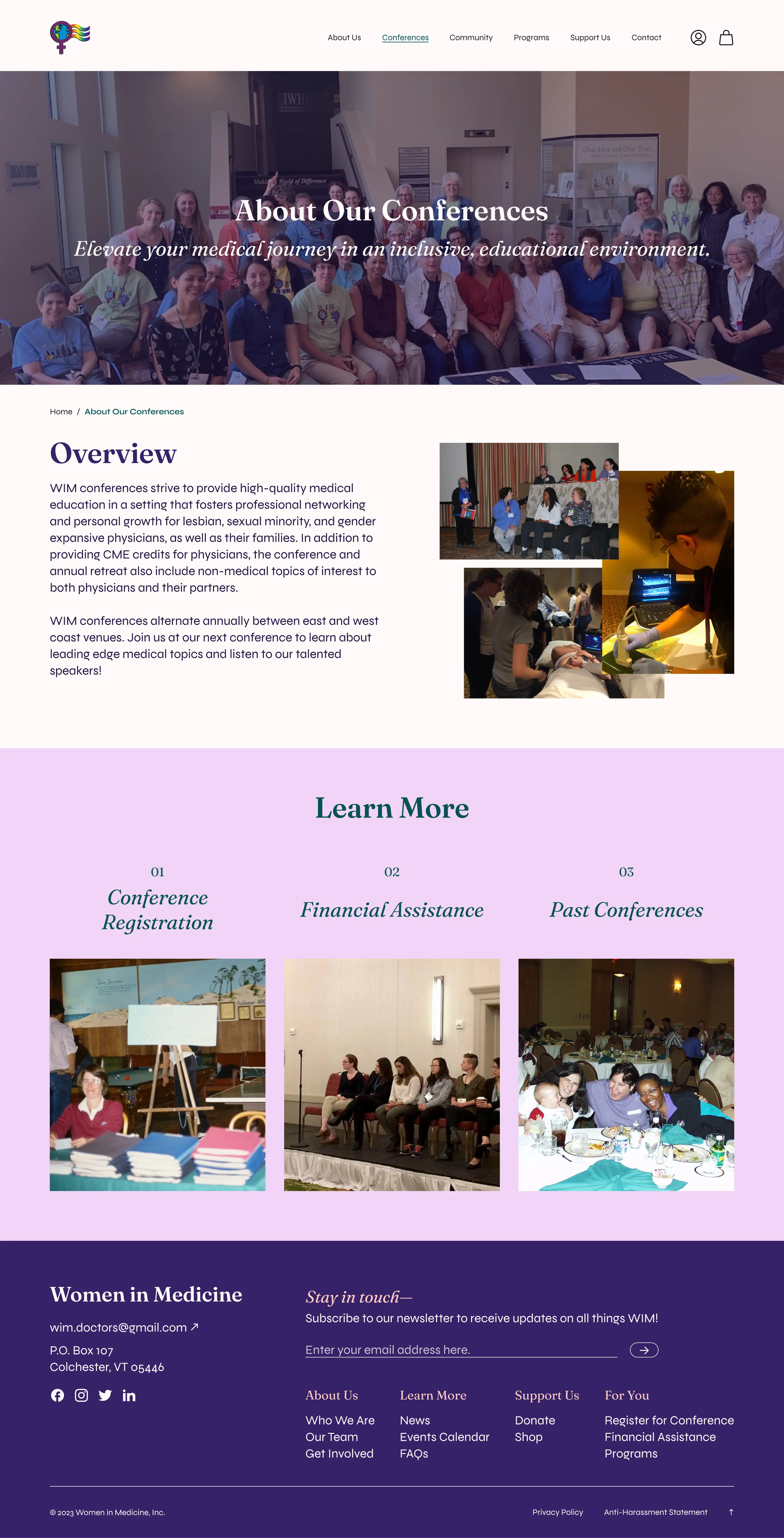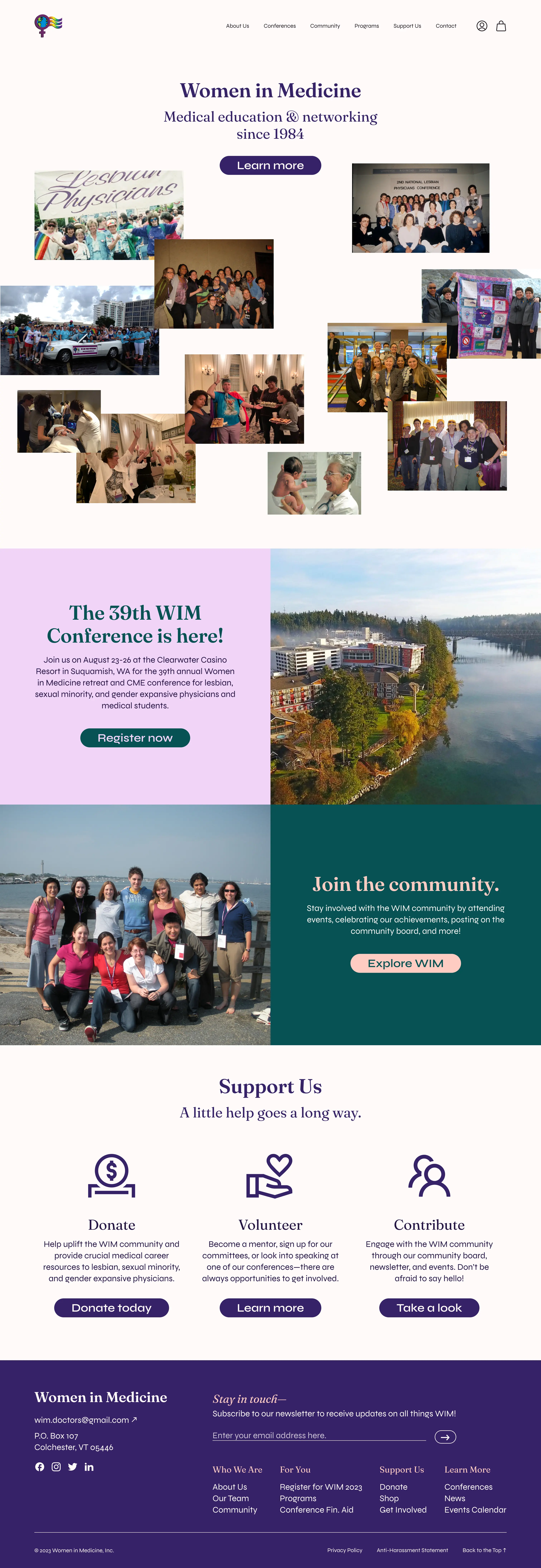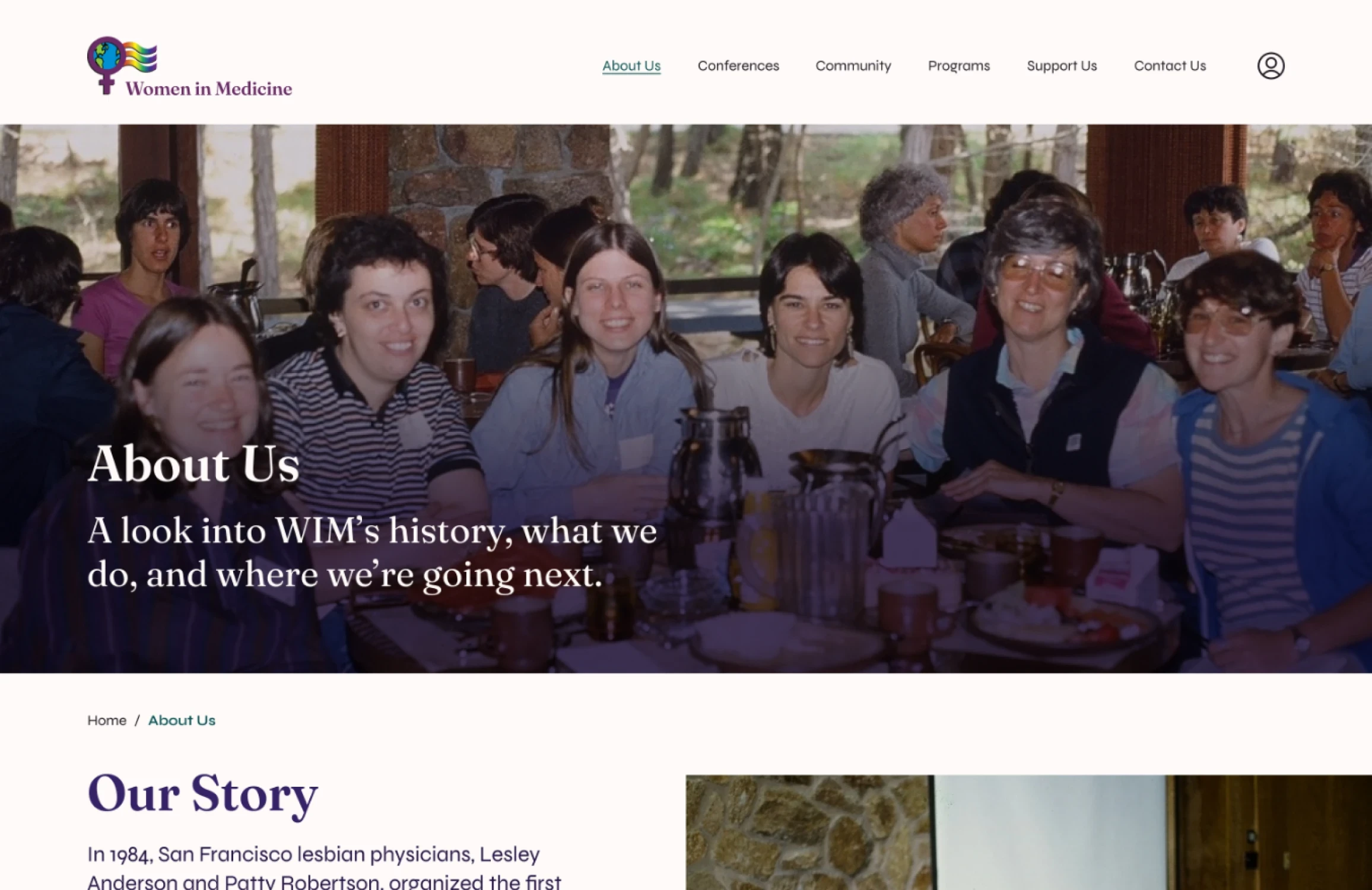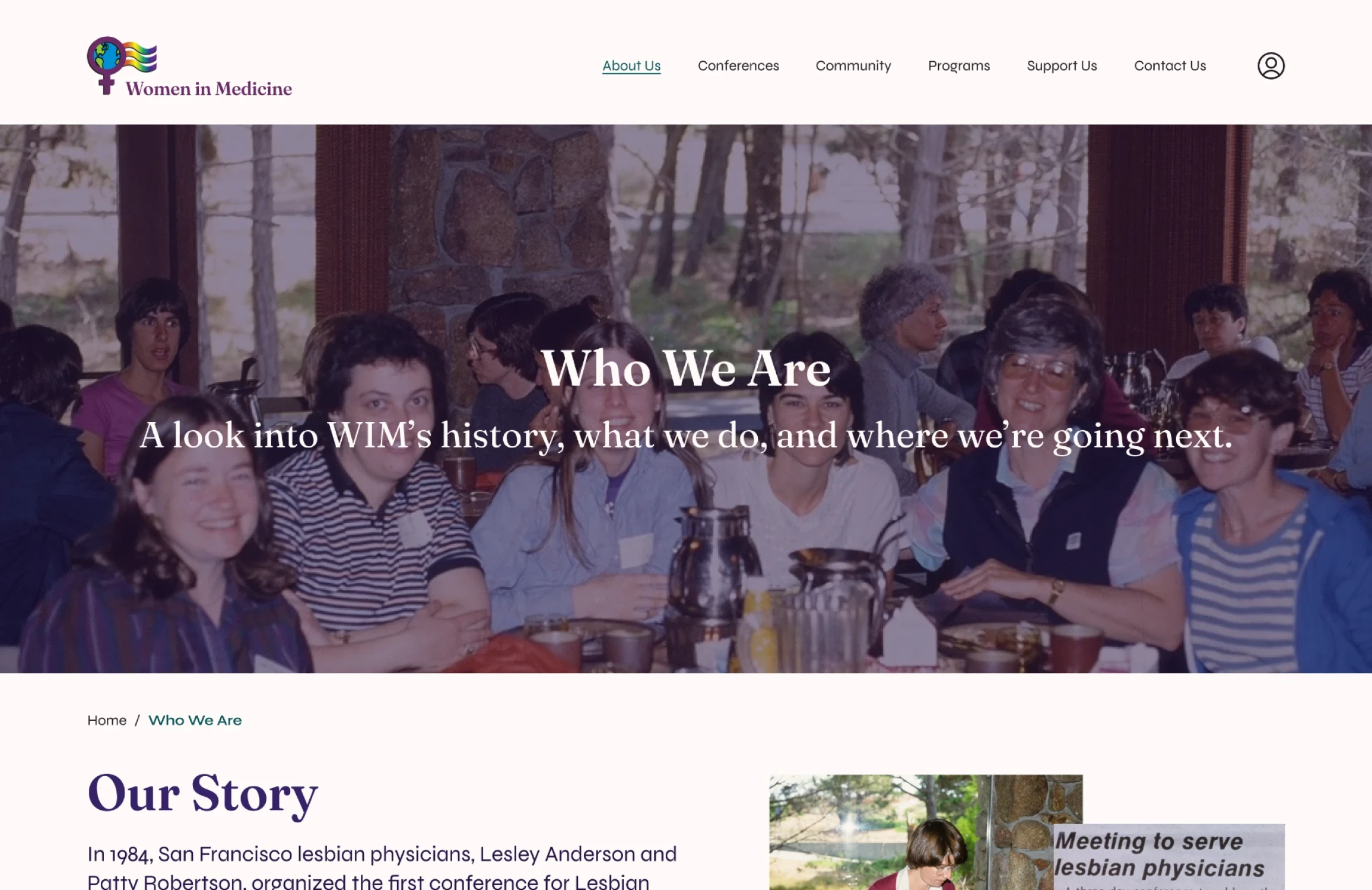 Women in Medicine (WIM) is a national non-profit community of lesbian, sexual minority women, and gender expansive physicians, medical students, and their families that provides medical education resources, family-inclusive retreats, constructive networking and mentorship opportunities, and scholarships for further medical education. With most of their staff busy organizing their annual conference, they lacked the time and effort required to update their website, which had become severely outdated.