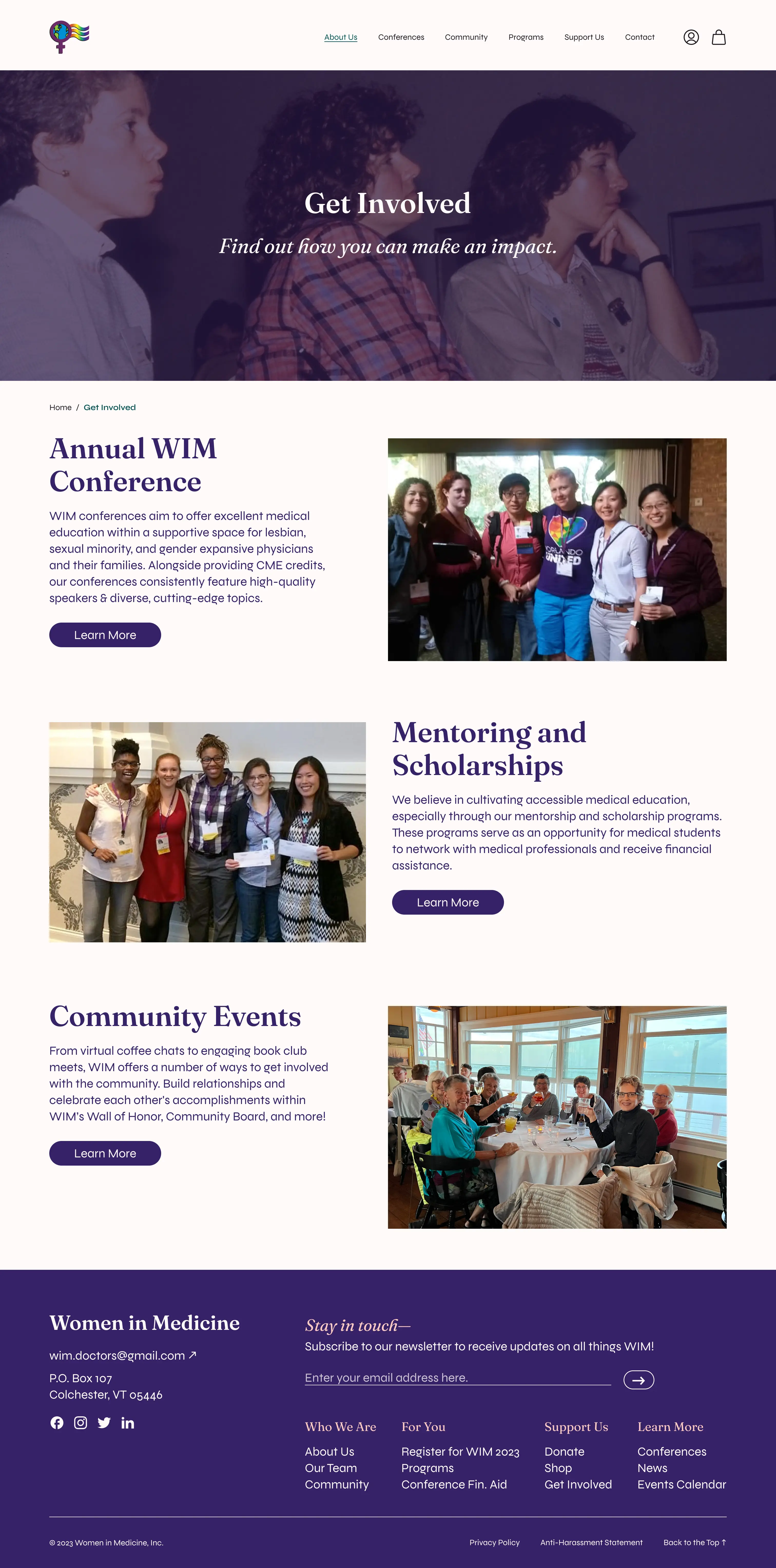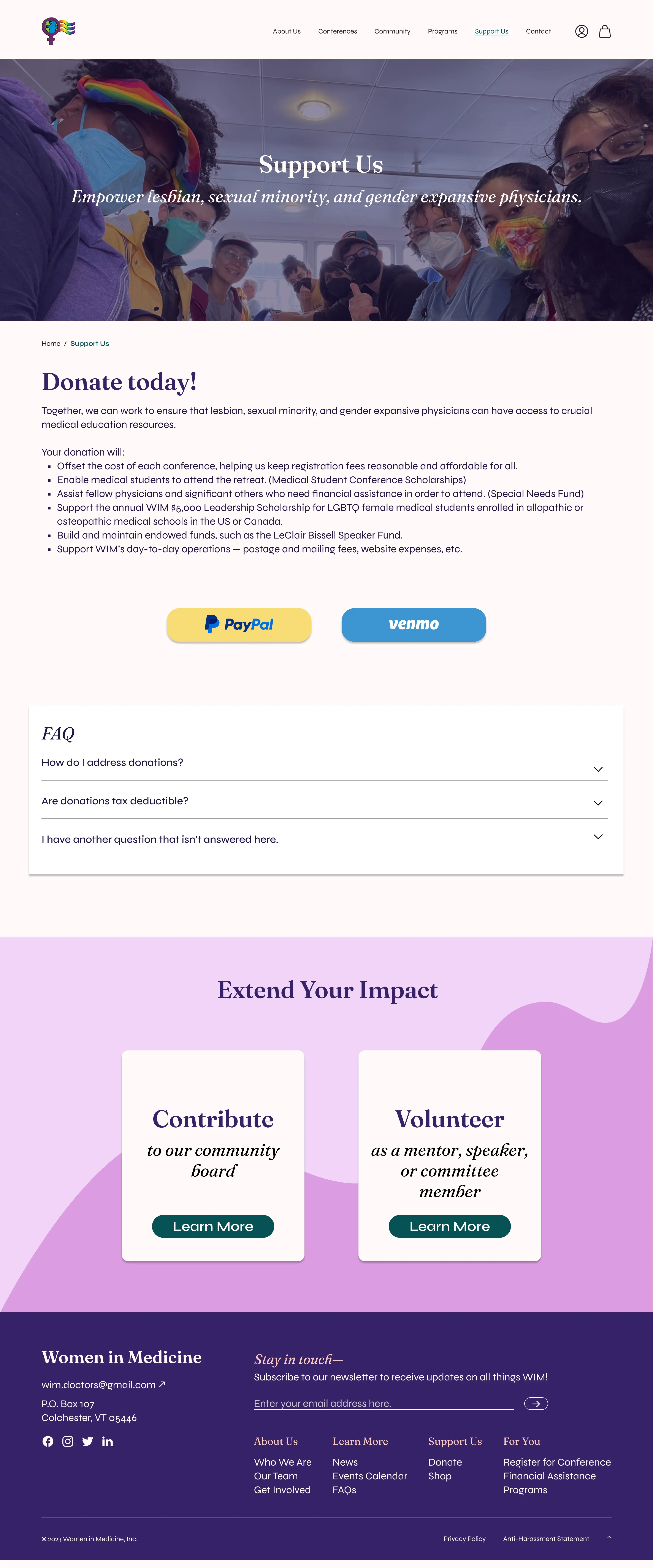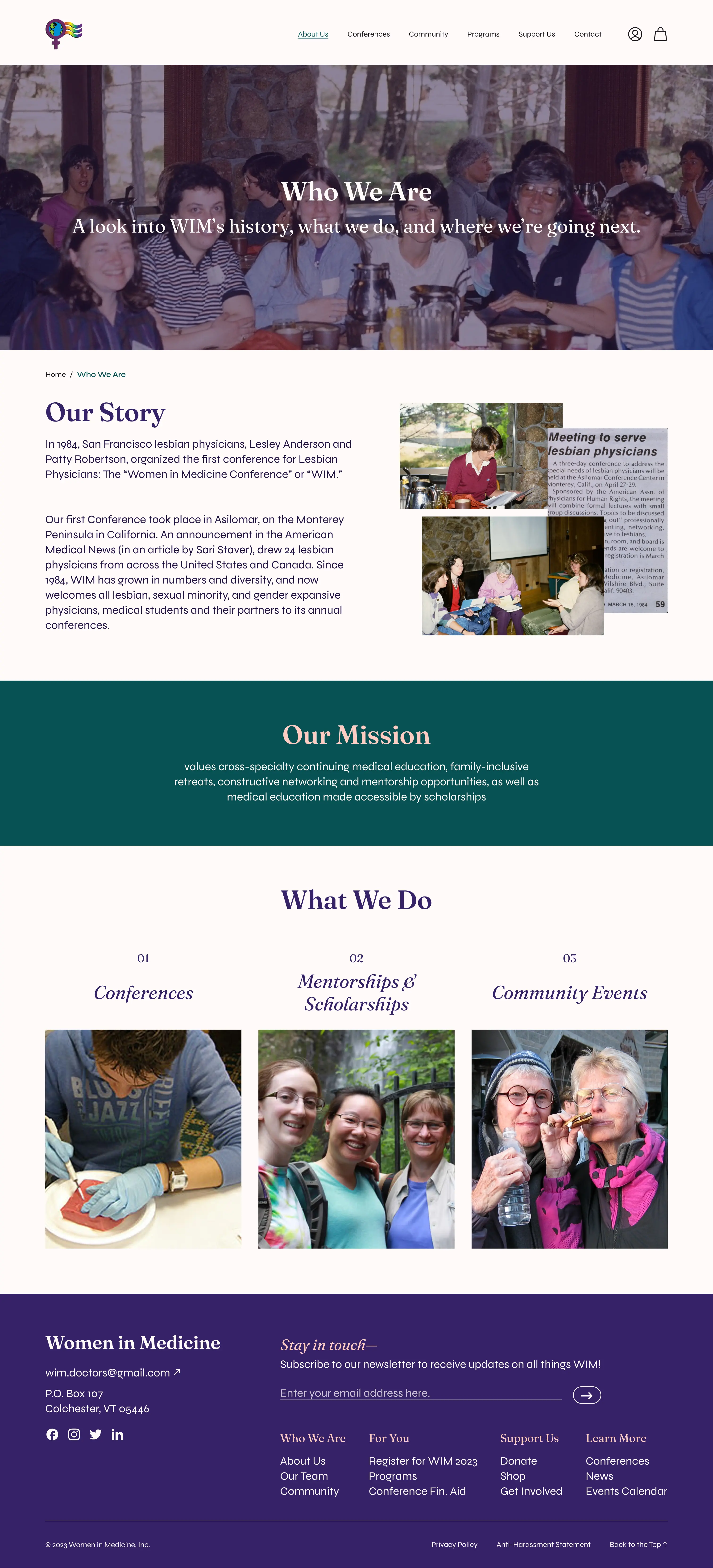 Women in Medicine (WIM) is a national non-profit community of lesbian, sexual minority women, and gender expansive physicians, medical students, and their families that provides medical education resources, family-inclusive retreats, constructive networking and mentorship opportunities, and scholarships for further medical education. With most of their staff busy organizing their annual conference, they lacked the time and effort required to update their website, which had become severely outdated.