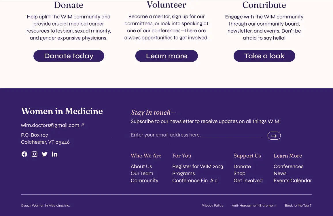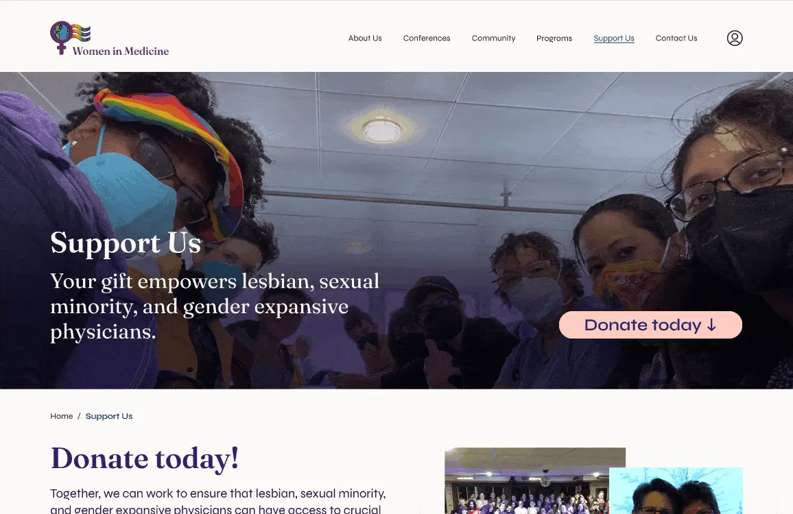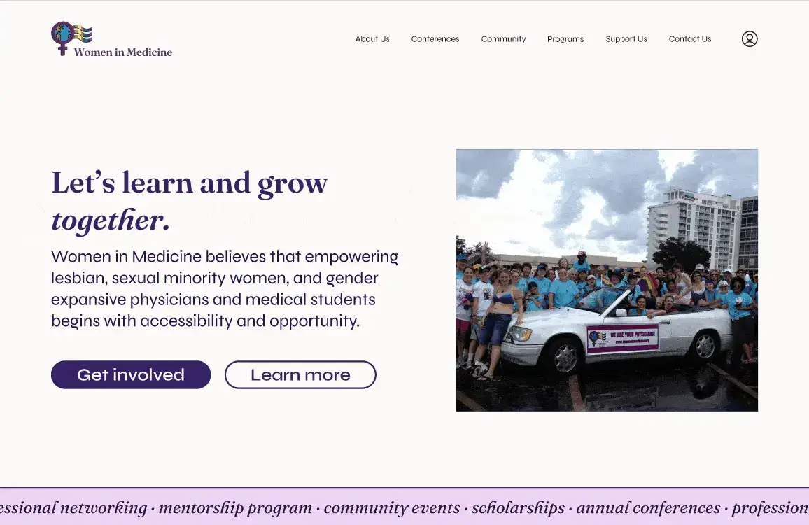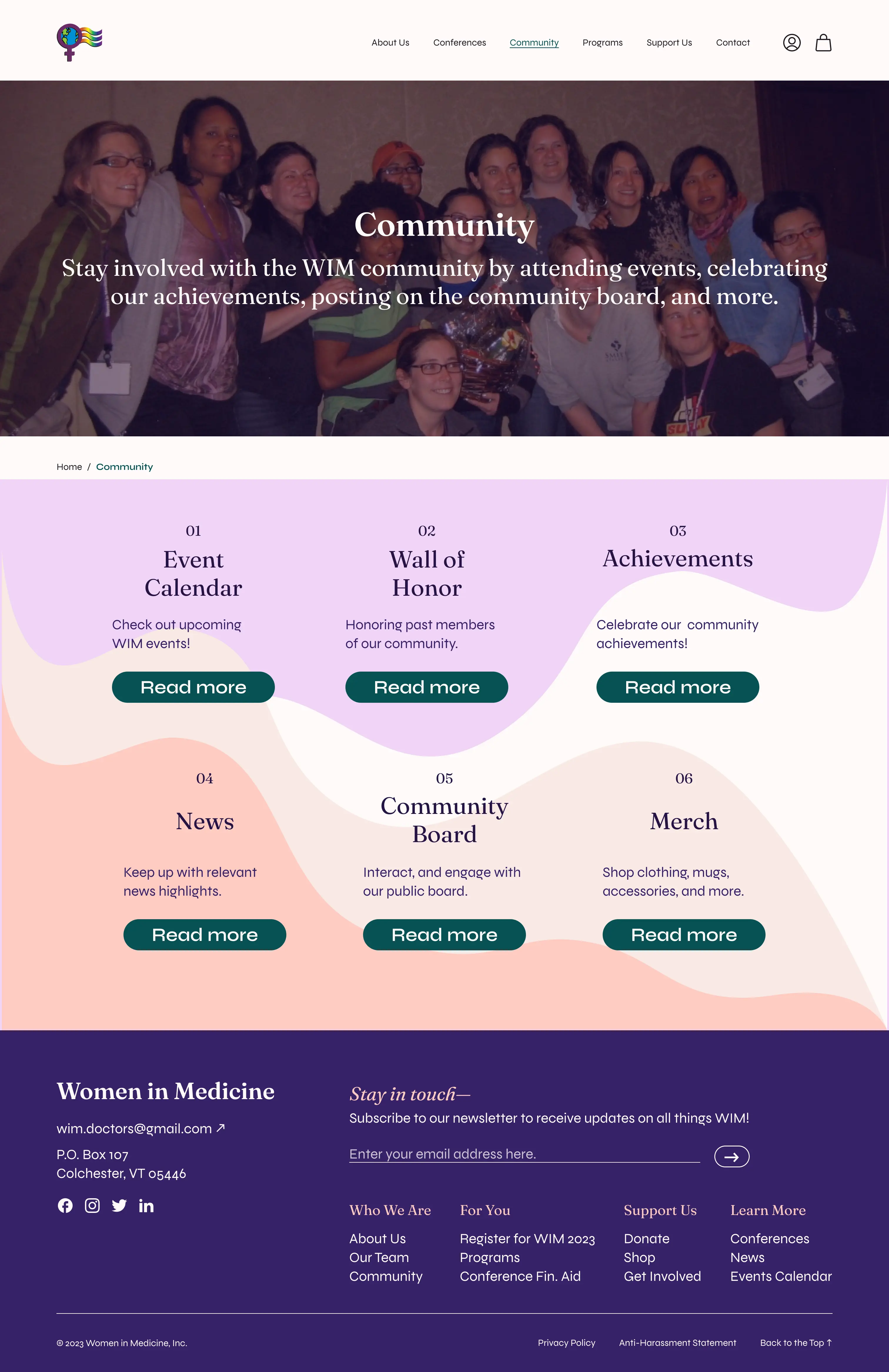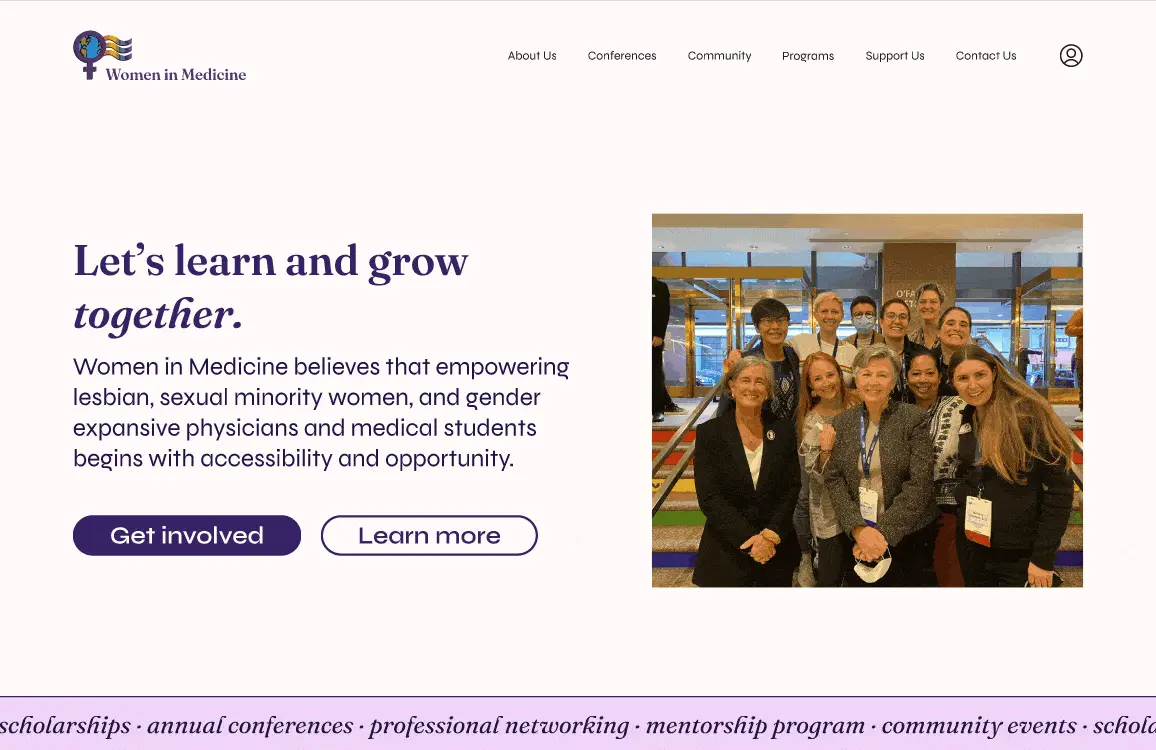 Women in Medicine (WIM) is a national non-profit community of lesbian, sexual minority women, and gender expansive physicians, medical students, and their families that provides medical education resources, family-inclusive retreats, constructive networking and mentorship opportunities, and scholarships for further medical education. With most of their staff busy organizing their annual conference, they lacked the time and effort required to update their website, which had become severely outdated.