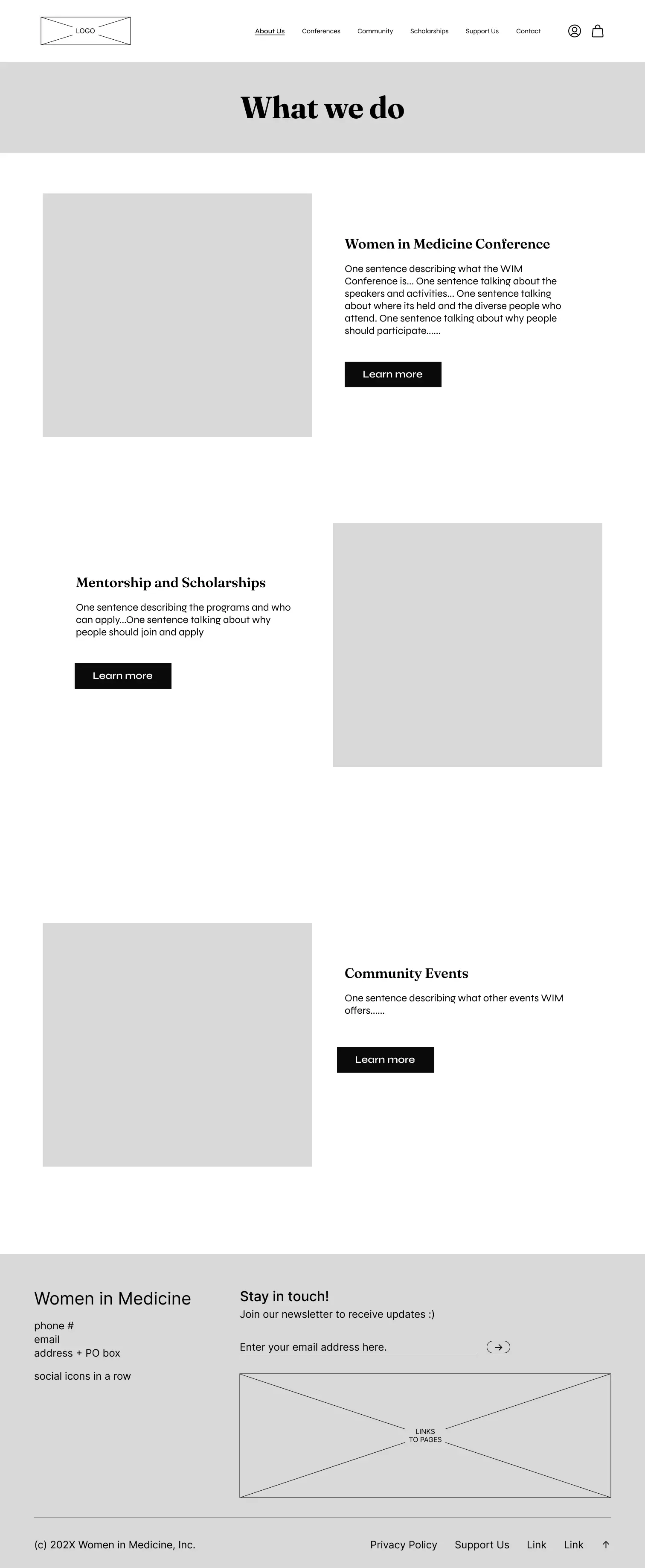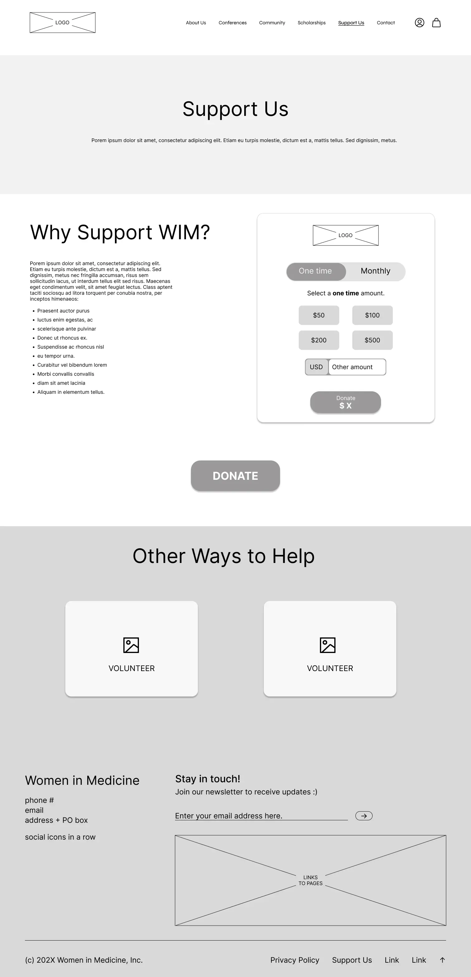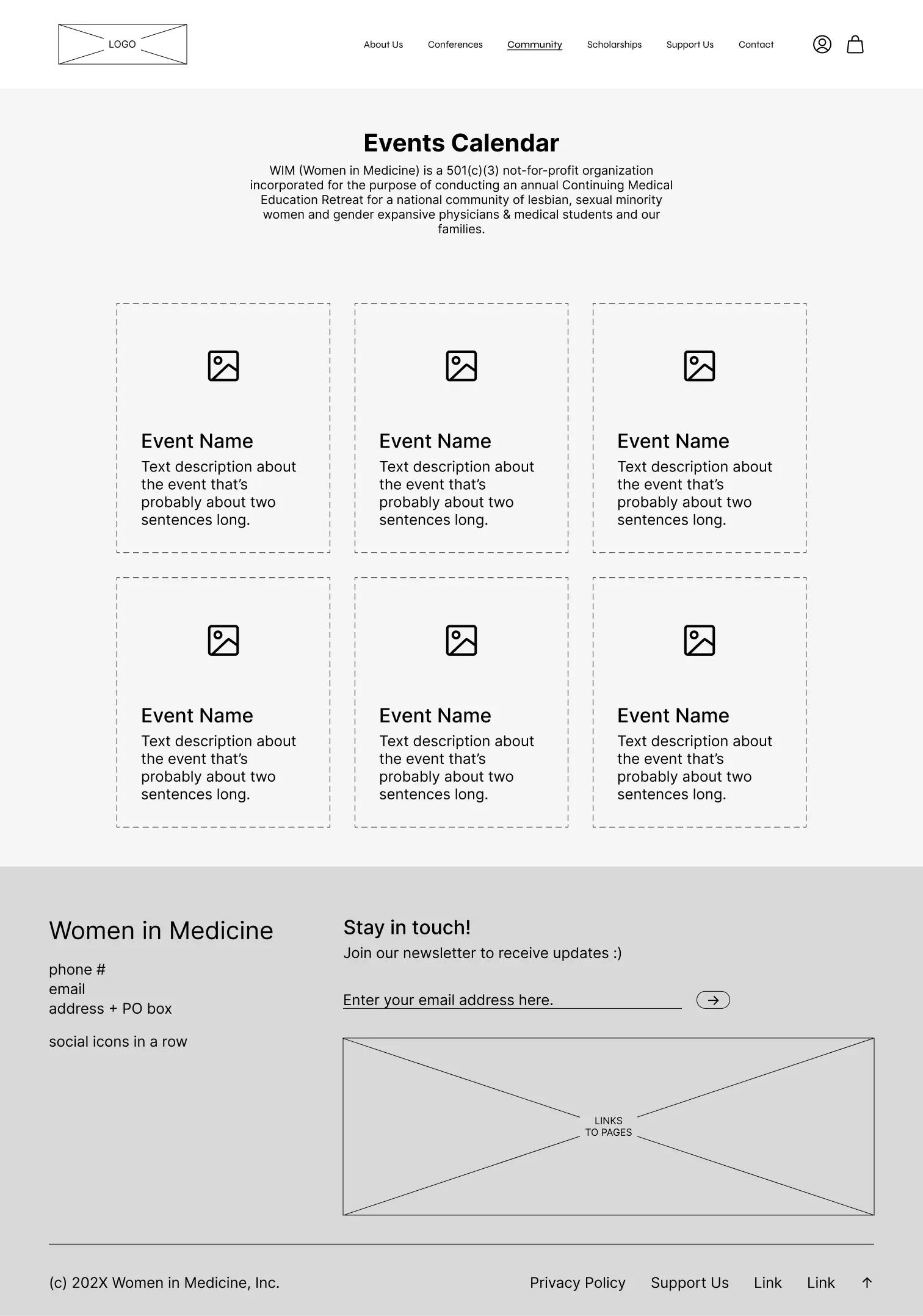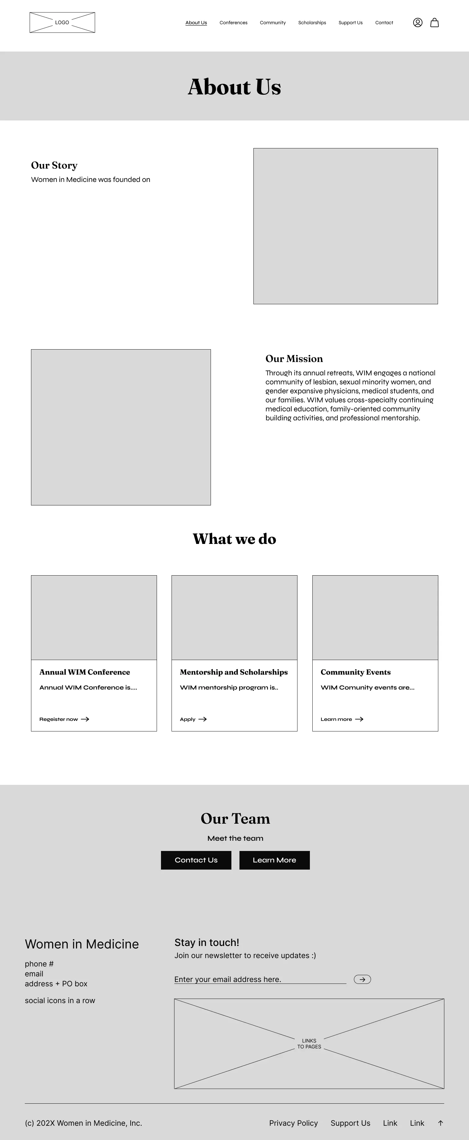 As interns for Design Co’s UP-Grade program, a 10-week online summer program where students work closely alongside a local, nonprofit organization to amplify and boost their exposure, my team and I were matched with Women in Medicine (WIM). Our client, MB, expressed the need for a website redesign due to the current website’s outdatedness and lack of community engagement.