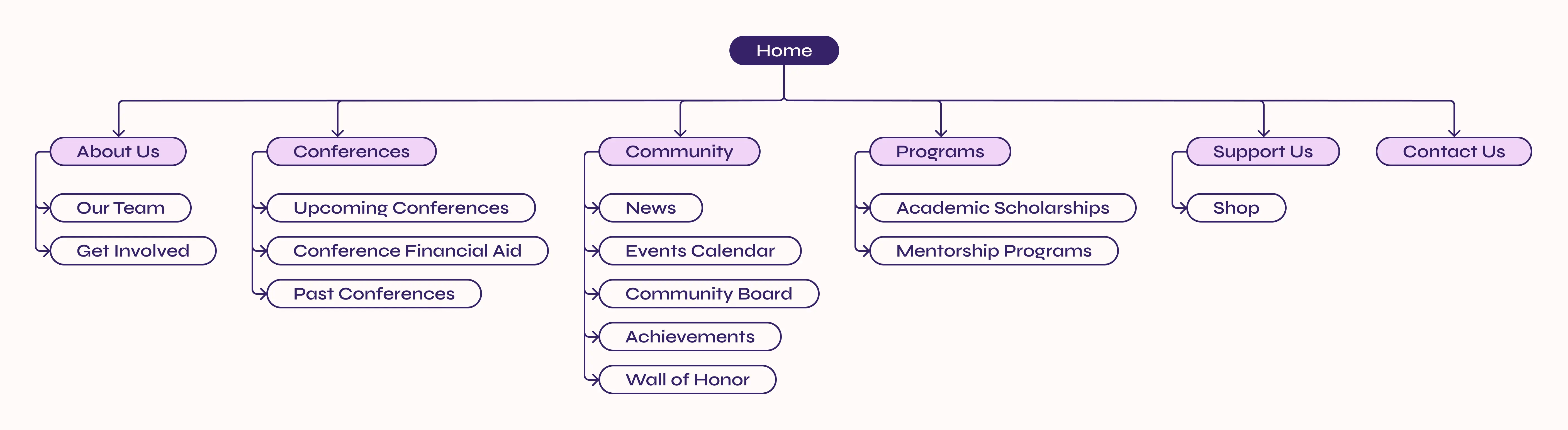 Designed and prototyped the high-fidelity version of key website pages: Home, About Us, Our Team, Get Involved, Conferences, Upcoming Conferences, Conference Financial Assistance, Past Conferences, Programs, Scholarships, and Mentorship Programs.